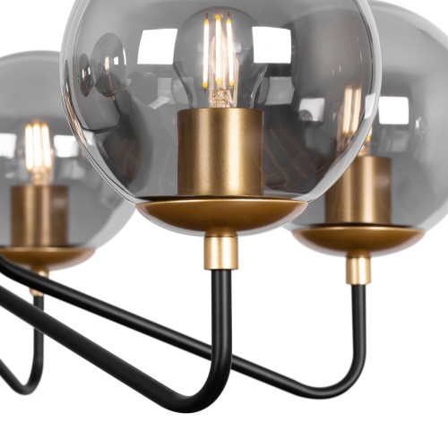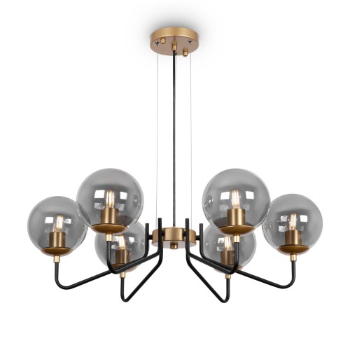 Серия современных светильников Moricio с узнаваемым дизайном и оригинальной палитрой. Актуальное сочетание цвета латуни и матового черного в арматуре. Сферические плафоны идеально вписываются в геометрию светильника. Глянцевое стекло отражает модный тренд на округлые формы и радует нетривиальным дымчатым цветом. Серия включает подвесные светильники на 6 и 8 ламп, одиночный подвес и бра. С помощью серии Moricio легко организовать комплексное многоуровневое освещение. Динамичный дизайн интегрируется в современные интерьеры, выполненные в стиле лофт, хайтек, минимализм.