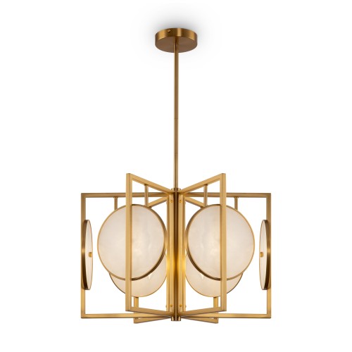 Прямоугольные линии и округлые элементы серии создают гармоничную композицию с выраженными нотками конструктивизма. Гальванизированная в цвет золота металлическая арматура добавляет сдержанному дизайну роскошного звучания. Главный акцентный элемент и изюминка светильника – декоративные пластины из натурального камня с уникальным текстурным рисунком. Серия включает потолочные люстры на 3 и 6 ламп (Е14), а также бра накладного монтажа на 1 лампу. Используйте светильники для создания цельного, завершенного образа интерьера, оформленного в стиле midcentury modern, контемпорари, неоклассика, конструктивизм.